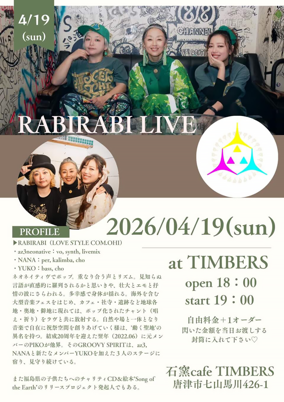 - Open & Start / 19:00 RABIRABI / 1st 20:00 & 2nd 21:00